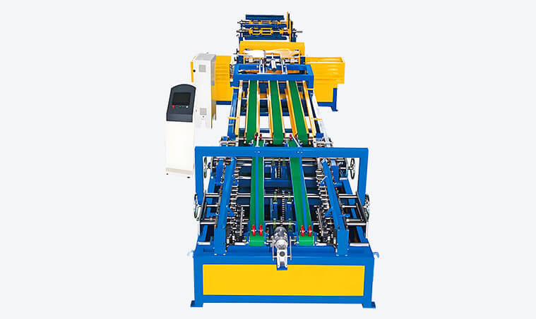 The main functions of the automatic duct production line 4 include unwinding, leveling, rib pressing, slotting, locking and folding. The main machine of the automatic duct production line 4 is used for leveling, rib pressing, slotting and shearing. All reels are made of bearing steel to extend the service life. Injection holes are used on both sides of the drive shaft to improve the bearing life. It has a material saving mode. The machine can automatically extract metal sheets.